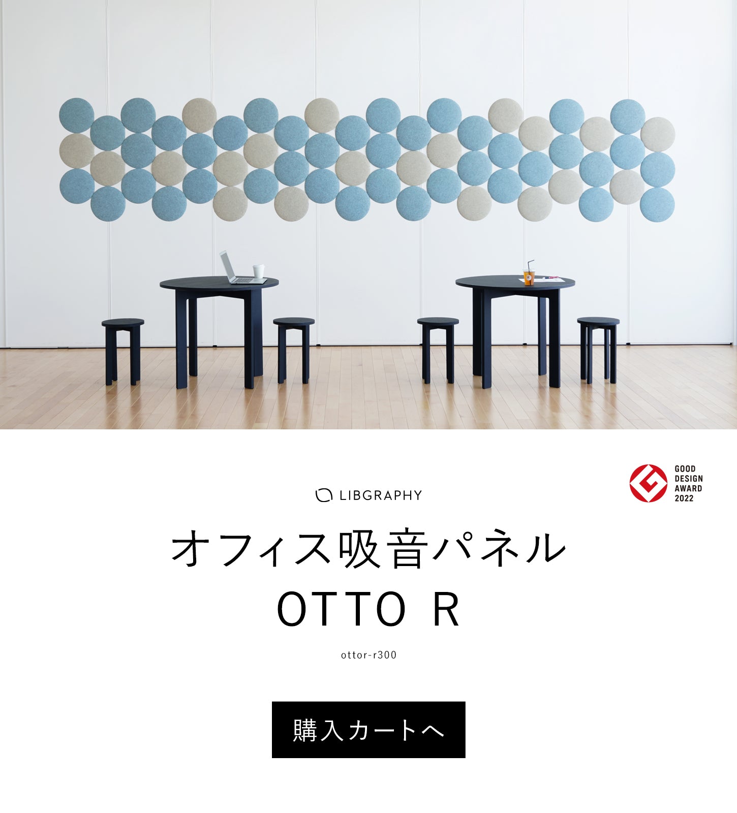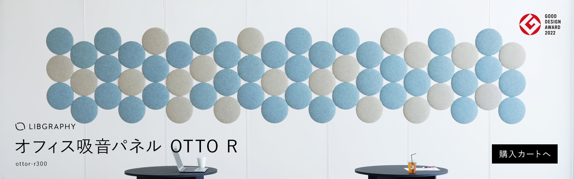 家庭向けに販売していたインテリア吸音材OTTOを、オフィスシーンでも調和するようデザインを一新。表面はR加工で緩やかなカーブに仕上げ、落ち着いたカラー展開でよりシックな印象に。R加工の語源である円の半径(radius)と洗練する(refine)の頭文字から、OTTO R(オットー・アール)と名付けられました。最高レベルの吸音材を使用した性能はもちろんのこと、モダンなデザインはオフィスの印象を明るくし、昨今注目される働き方改革の一環としてもご使用いただけます。