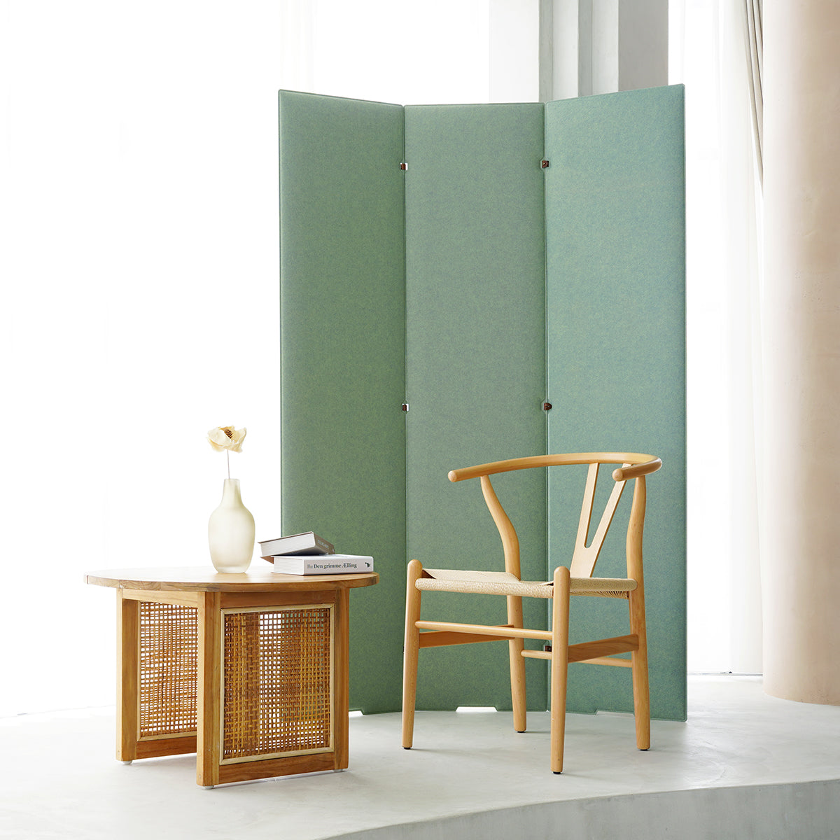 視線だけではなく周囲の音も和らげることができるパーテーションです。工業分野での実績を基に、材料の吸音材を新規開発。高密度なポリエステル繊維と特殊な表皮が音を吸収しザワツキや反響を抑えます。組立式なので、使わない時はパーツを分解してスマートに収納可能。お部屋との調和はもちろん、インテリアのアクセントとしてもお使いいただけます。また、カームダウン・クールダウンスペース設置を目的とした公共施設等にもご愛用いただいております。