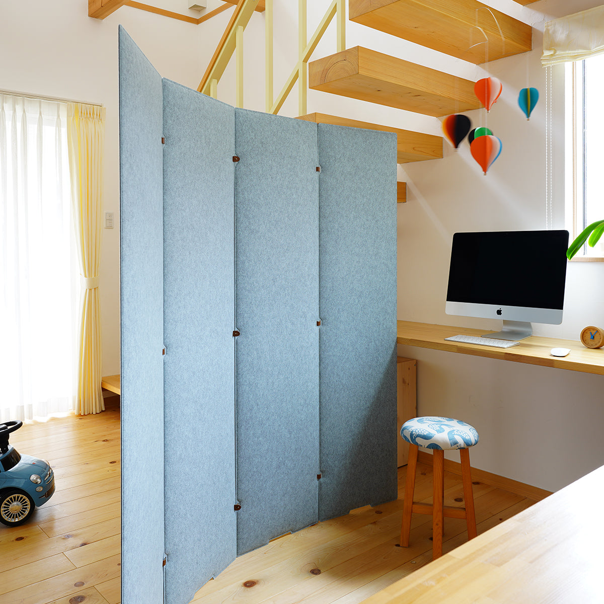 視線だけではなく周囲の音も和らげることができるパーテーションです。工業分野での実績を基に、材料の吸音材を新規開発。高密度なポリエステル繊維と特殊な表皮が音を吸収しザワツキや反響を抑えます。組立式なので、使わない時はパーツを分解してスマートに収納可能。お部屋との調和はもちろん、インテリアのアクセントとしてもお使いいただけます。また、カームダウン・クールダウンスペース設置を目的とした公共施設等にもご愛用いただいております。